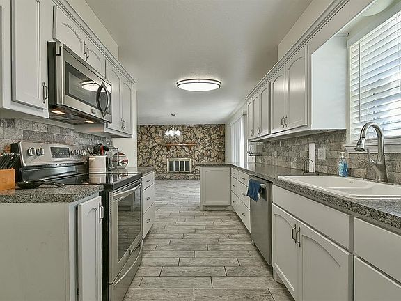 Adorable home in SW OKC/Moore Schools is ready for it next owner! Home was updated a few years ago! Downstairs has wood look tile throughout, large living area that flows to the dining with stone fireplace! Kitchen remodel features stainless still appliances, stone backsplash and pull out drawers. All the bedrooms and main bathroom are upstairs and good sized! The backyard is huge for anything you desire and backs to the elementary school! This will make someone a great home, come check it out this weekend!