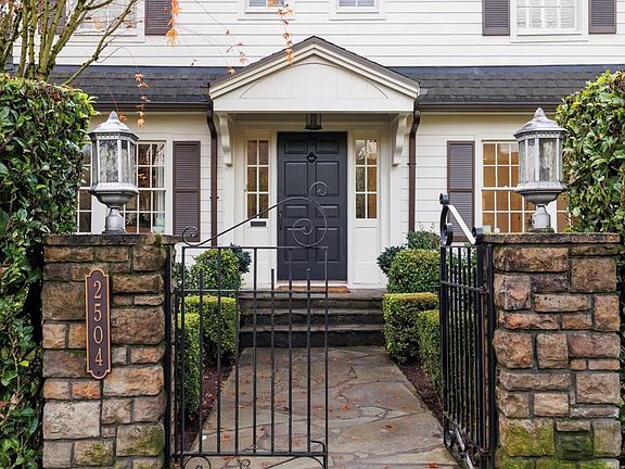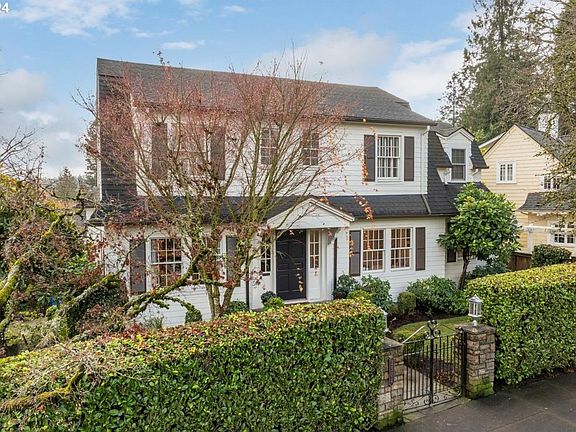 Discover a Portland Heights gem that blends timeless elegance with modern sophistication. This dreamy, fully updated estate offers a superb floor plan and a level yard perfect for play and pets, all while boasting lovely views. Nestled in the coveted Ainsworth school district, this four-bedroom, three-and-a-half-bath home is a testament to quality and style.In 2006, the home underwent a transformation to ensure it stands the test of time. A new foundation was poured, and the floor plan was reimagined to create an open, inviting space. The kitchen now flows seamlessly into a dining nook and family room with a cozy fireplace, while maintaining formal rooms for entertaining. Hardwood floors and a beautifully updated kitchen add to the home's charm.The formal living and dining rooms retain their original elegance, with light streaming through numerous paned windows. The regal dining room overlooks the front lawn, framed by a mature laurel hedge and formal gardens. A butler's pantry offers space for a cocktail or coffee bar, and French doors lead to a private study with built-in bookcases and hardwood floors, perfect for quiet reading.Outside, the sunny, private lot features terraced gardens, a front lawn, and natural hedgerow borders, providing ample room for gardening. The covered back patio is ideal for year-round grilling and dining, while charming stone stairs lead to a sunny landing for relaxation and enjoyment.Conveniently located near Ainsworth Elementary, Lincoln High, and NW 23rd Ave shops, this home offers an ease of lifestyle with all things Portland at your fingertips. Lincoln High School is a sought-after, state-of-the-art public school. Welcome to a captivating beauty where elegance, sophistication, and modern updates converge! [Home Energy Score = 1. HES Report at https://rpt.greenbuildingregistry.com/hes/OR10225170]