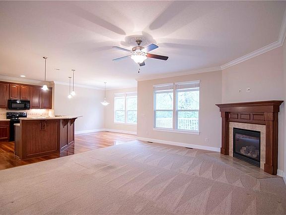 2504 Serravalle Uniontown, Ohio, a former builders model offers a generous foyer entry that opens to the great room, kitchen, and dining room. The great room features a gas fireplace, and accesses a covered deck overlooking the wooded back yard. A fully applianced kitchen boasts cherry cabinets, and cherry floors, a walk-in pantry, high/low island with a breakfast bar, and solid surface counters. The dining room is open to the kitchen and great room has cherry floors, access to the deck, and unobstructed views of the private back yard. This home has a very sought after split floor plan with two bedrooms and a full bathroom on one side of the house and master suite on the other side of the home. The master suite, with access to a private deck, includes a spa like full bathroom suite, a walk-in closet, and a office area, separated from the bedroom by a pocket door. A mudroom entry from the three car, heated garage, and a first floor laundry complete the main living area. Possible in-law-suite in the finished walk-out lower level, includes a full bathroom, a kitchenette, dining area, family room, a unique play area, and three additional rooms, that could serve as bedrooms. Newer carpeting in the two upstairs bedroom. Garage has its own electric panel. Immediate occupancy!