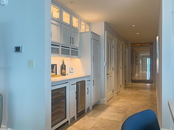 Welcome home to Opal Condominium, the premier low-density gulf front development in Orange Beach! Featuring 1 unit per floor, gated entry, coded lobby entry & elevator access to your personal unit Foyer. This phenomenal unit offers five bedrooms, five and one-half baths. Enjoy panoramic gulf views from the floor to ceiling windows spanning the living and dining areas. There are two primary suites - one gulf front, the other on the north end. The gulf front primary suite offers a walk-through closet, bubbling overflow soaking tub and separate shower. Gorgeous kitchen with tiled backsplash, Kitchenaid gas range and kitchen appliances, 4,330+/- square feet - this unit is exceptionally spacious, offering plenty of room for comfort and entertainment as well as an icemaker and beverage cooler. Opal offers an indoor pool with entertainment area, zero entry outdoor pool with hot tub, fitness room and more! This exceptional property is exceedingly well done and is a must see for the discerning buyer.