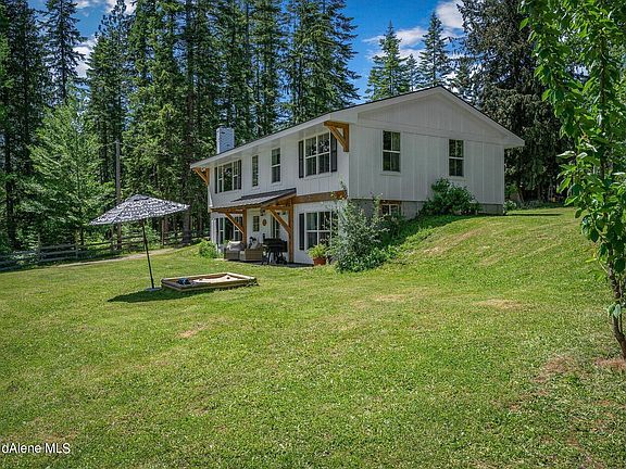 LIVE THE NORTH IDAHO DREAM with this beautifully remodeled 2700 SF home on 3+ horse ready acres. Includes a 40x50 Shop with concrete floor, power, and water. This lovely home has new windows throughout, updated HVAC system with a heat pump for efficiency and to keep you cool in the hot summer months, an open floor plan, beautiful bamboo floors, barn doors, fresh tile, stainless steel appliances, and a huge dining room, great for entertaining. Everywhere you turn you can view your spectacular land that is fenced and crossed fenced, ready for horses, chickens, pigs whatever your heart desires. There are no CCRS or HOA here! It is truly a park-like setting with lush lawn, mature fir/spruce trees, including a producing pear tree and a large/fenced established garden. Only 20 minutes to downtown CDA this country home will not disappoint!