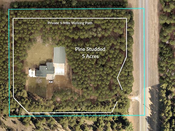 A massive 42x64 pole shed with concrete flooring and electric provides ample storage and workspace. Enjoy a private 1/4 mile cleared walking path surrounding the property and an ideal setup for a home-based business or in-law suite with a separate office, kitchenette, and bathroom. Or Bring your horses and setup stalls and riding area.