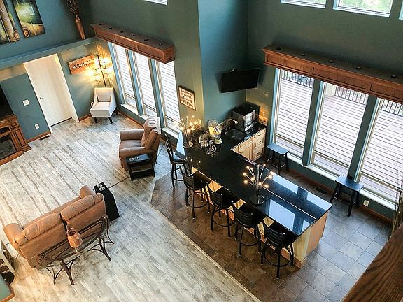 Breath-taking waterfront dreamhome on 53+ acres less than five miles from the hospital or high school. Main-level master suite w/huge walk-in closet. Master bath remodeled in 2020 w/granite countertops and a large custom tile walk-in shower with dual rainshower heads. New luxury vinyl flooring in the grand room with 22' ceilings & windows from floor to ceiling. Four bedrooms upstairs with Jack and Jill bathrooms. Theater room on main level. Kitchen and wet bar are complete with black granite countertops. Large walk-in pantry with shelving galore. Laundry on both floors. Winter Creek runs through the middle of this property and never freezes (great trout fishing). 2000+ trees. Private wells(3) & water rights. Basketball court, underground trampoline, greenhouse, pig pen, chicken coop, and horse shed. Huge deck with a swim spa off of the master bedroom. 40x40 steel building. Duck/goose blind sunk on creek. Tree stand for deer hunting. New roof in 2020. Preapproval letter required.
