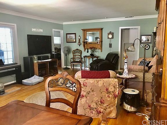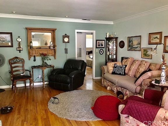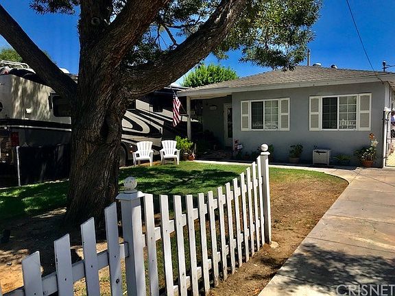 A picket fence welcomes you to this charming Newhall home located on a closed off portion of Wiley Canyon Road with limited access and no through traffic. This homes sits on a 6700+ lot with no rear neighbor and has separate RV parking on one side of the home and a extended driveway with a two car detached garage on the other side. The home has plaster ceilings and original oak flooring that have been well maintained adding to the home's character. The living and adjacent dining area, with ample natural light, provides ample space for entertaining. The master located in the rear of the home has it's own private full bath. There are two secondary bedrooms serviced by a hall full bath. The galley kitchen has a cozy breakfast area at one end with a window that overlooks the front yard. The antique gas stove is a perfect addition to the home's character. At the other end of the galley kitchen you'll find accommodation for the washer and dryer. There is a side door from the kitchen which provides access to the rear yard area. A bonus is the basement/cellar space (approximately 10 x 11). This space is presently used for storage but with modification and potential access directly from the home's interior could be a perfect wine cellar. For those thinking extended family living or potential rental income the detached two care garage could be a converted to a ADU. This home has endless possibilities. Easy access to shopping, dining and the freeway.