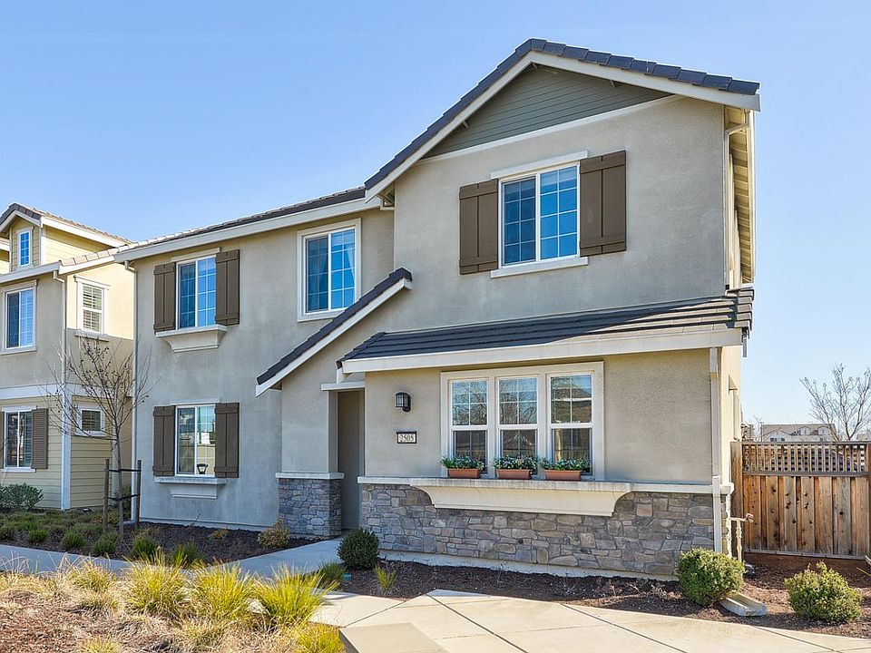 Dont miss the opportunity for this nearly new and beautiful five years old single-family home. It features four bedrooms, three baths, plus a spacious loft. Its located within the master-planned community of Spindrift, in the charming neighborhood of Eden Shores. This home features a spacious open floor plan with one bedroom and one bath on the main floor. It has several energy-efficient upgrades, including a tankless water heater, a 3.3 kWh solar panel system, and a Tesla car charger. It has an additional NEMA 14-50 outlet for a second EV charging station. The home features Mohawk laminate wood flooring throughout the living area, an upgraded kitchen area, a spacious master suite, and a master walk-in closet with a custom built-in organizer. This home is ideally situated in a wonderful commuter location, just a few minutes drive to San Mateo Bridge, Dumbarton Bridge, 880, Union Landing, and walking distance to Costco, Starbucks, Five Guys, gym, park, and many more.