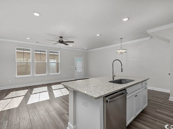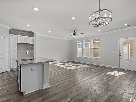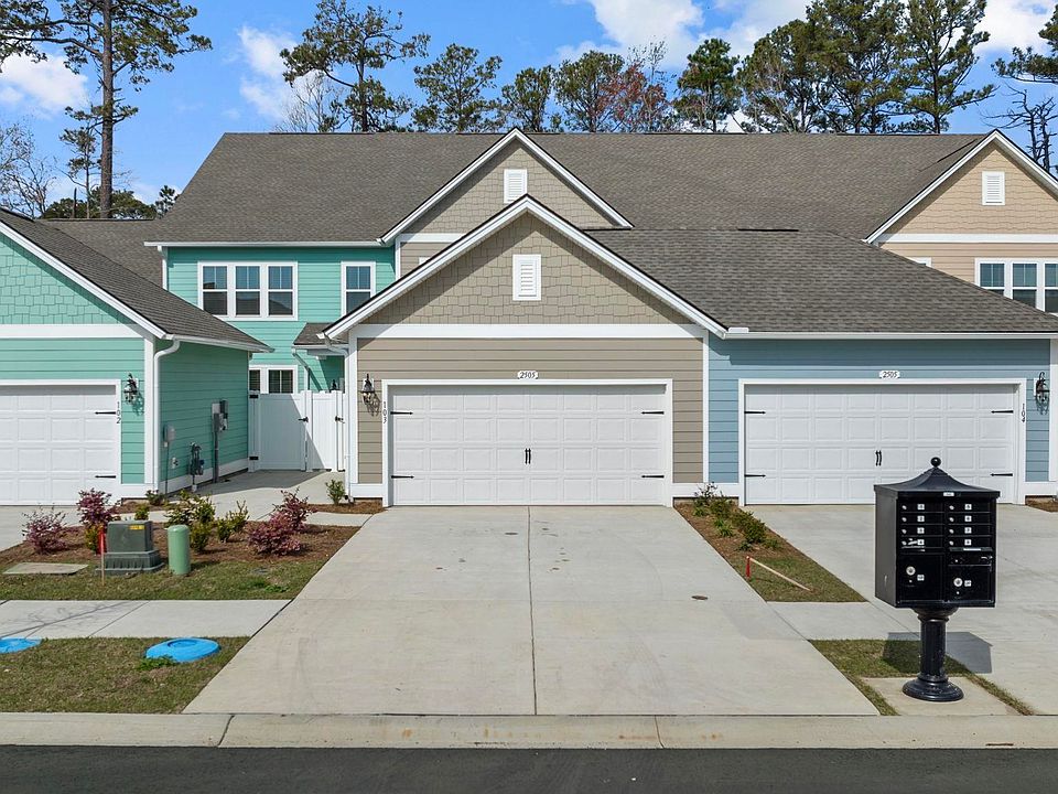 Welcome home to this brand new 3 bedroom, 2.5 bath true townhome in Belle Harbor in The Market Common! This townhome is turn key ready and better than new! It was built by Lennar and is their functional and spacious Pinehurst model. This townhome has a 2 car detached garage and two parking places outside and a private, gated, patio/courtyard. Inside there is an open living room, dining nook, breakfast bar and these options are perfect for entertaining. The kitchen has granite countertops, plenty of cabinet space, tile backsplash, gas range and premium GE appliances. All of the first floor has laminate flooring, crown molding, and upgraded fixtures. The laundry room and half bath are conveniently on the first floor as well as the owners' suite. The ensuite has granite countertops, a double sink, tile shower and walk-in closet. Upstairs is a spacious family room, two bedrooms, a full bathroom, and another walk-in closet for extra storage. There is also a 'Ring' doorbell and tankless hot water heater. Belle Harbor is a natural gas community and makes living here low maintenance! Residents also get to enjoy the community pool, park, tennis, sidewalks and lakes. Living in this wonderful community there is easy access to the beach, dining, shopping, and entertaining... all is a golf cart ride, bike, or walk away! Trails, bowling, a dog park, a movie theater, playgrounds, and gyms are all just some parts of living the lifestyle of The Market Common. Schedule your showing today!