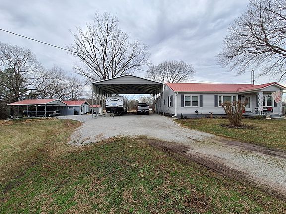 Peaceful country home sitting on 2 +/- acres. This property four bedrooms, two baths, new vinyl siding and gutters in 2024, lifetime warranty windows, metal roof, fiber internet, CH/A unit installed in 2022, laminate flooring throughout most of the home, natural gas available at the road, two large carports, a half basement used for storage/storm shelter, detached wired garage and an additional storage shed. Enjoy peaceful evenings sitting on the covered back porch looking over the big back yard. Front and back yards have plenty of room with mature oak trees and a place for a garden spot. Just minutes to schools, shopping, Lake Halford and the hospital. Termite contract currently in place.