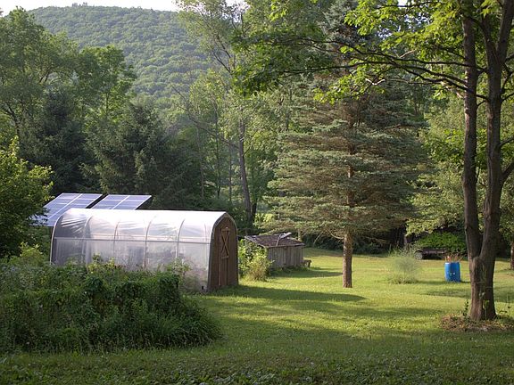 A diamond in the rough that will be the ideal property for people with vision, energy and a bit of cash. This magical 12.6 acre homestead is located in the Town of Danby. Kids attend South Hill Elem. in the ICSD. Gorgeous Danby Creek flows through it & Danby State Forest adjoins to east. Existing FLLT Conservation Easement. The 1990 solidly constructed 2 br, 1 full bath chalet style home has all the elements of self-sufficient living including:Spectrum broadband, 3.5 kW solar array, a reliable well, greenhouse, outdoor wood furnace that can supply all warmth and domestic hot water, modern 2 story barn, detached studio/meditation building heated by wood stove, rainwater collection system and lovely deck w/distant views of Durfee Hill. Traditional hot water tank and propane furnace back-up & cable through Spectrum. Lots of things a little broken, but a very special place.