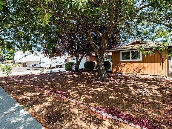 House shows pride of ownership! This east Medford home offers beautiful old growth shade trees, low maintenance yard from front to back with easy access for the RV parking on a large corner lot! Natural light graces the entire home, beautiful newer wood laminate flooring and carpeting throughout this 3 bedroom/2 bath home, complete with a living room, family room and dining room. The kitchen is open and spacious with white cabinetry and stainless-steel appliances. The adjoining family room features a fireplace and a sliding glass door that leads out to the back yard which has an above ground pool complete with a wood deck area for sunbathing. Fruit Trees, berry bushes, and a patio area with ample room for your summer fun and BBQ's.