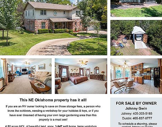 FOR SALE BY OWNER If you are an RV owner looking to save on those storage fees, a person who loves the outdoors, needing a workshop for your hobbies & toys, or if you have ever dreamed of having your own large gardening area than this property is a must see! Easy access to multiple highways! 4.52 acres MOL of beautiful land, appx. 3,047 sqft home, appx. 900sqft workshop, shed, RV Storage building with electric hookup and large gardens. The home offers 3 bedrooms, 2.5 baths, 2 car garage and multiple patios. The workshop offers electric, plumbing, well house, office area and greenhouse. The property offers gated access with CCTV, blacktop and concrete driveways to the main home and workshop, both a vehicle and pedestrian bridge for easy access to gardening areas with water, a slide down the ravine to many trails around the property. There are multiple outdoor patios to enjoy relaxing on! Oklahoma City Schools - Buyers are responsible for all realtor/agent fees if they chose to use one - Must provide proof of funds or pre-approved financing before a showing will be scheduled