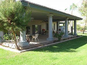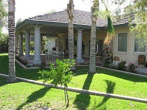 NOT SHORT SALE NOT BANK OWNED. True custom home, in exclusive gated commuity, quality brick construction, 10' flat ceilings, 6'' crown molding, beautiful custom baseboards, cedar closets, central vac, security system, Norco windows, very low utility bills, beautiful leaded door glass and side lights, bay windows, huge master bath, large rooms. .85 acre irrigated lot, gorgeous covered patio(40X24)designed for entertaining, mature landscaping. Close to the freeway, airport, Scottsdale, and downtown Phoenx. Great quality custom home with brick all around. Needs some updating so get your own colors etc.