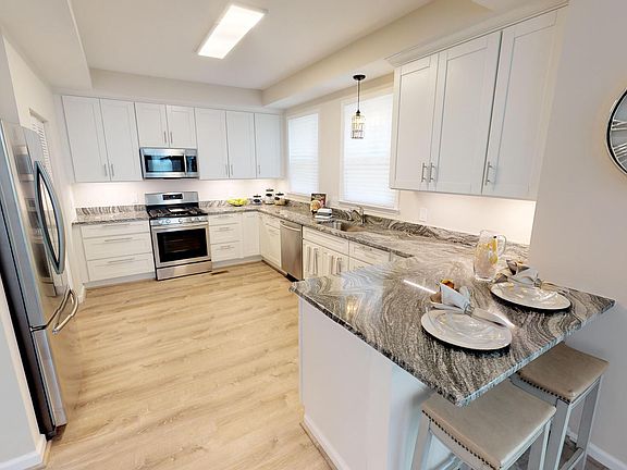 HGTV-inspired home was designer renovated with beautiful finishes and fixtures. Be sure to see our interactive virtual tour (click on the movie camera icon above the main photo)! Generous rooms and thoughtful layouts make for easy living. Open floor plan boasts a chef~s kitchen with breakfast bar, stainless appliances, and granite counters. The dining room~s built-in bar area and sliding door lead to your floating deck in the quiet backyard~great for entertaining. Or, just kick back in your living room with a feature wall, marble-accented gas fireplace, and room for a large TV. The laundry room is conveniently located on the second floor with 3 bedrooms and a bath with double sinks and a makeup area complete with a light up mirror. The 3rd floor owner's retreat has room enough for a king sized bed and seating area leading to a large walk-in closet with a dressing table nook and bathroom with bench seating in the shower. Improved basement is great for storage or ready for your finishing touches. Nicely landscaped yard is designed to welcome your family and guests for years of enjoyment. What are you waiting for?!!!