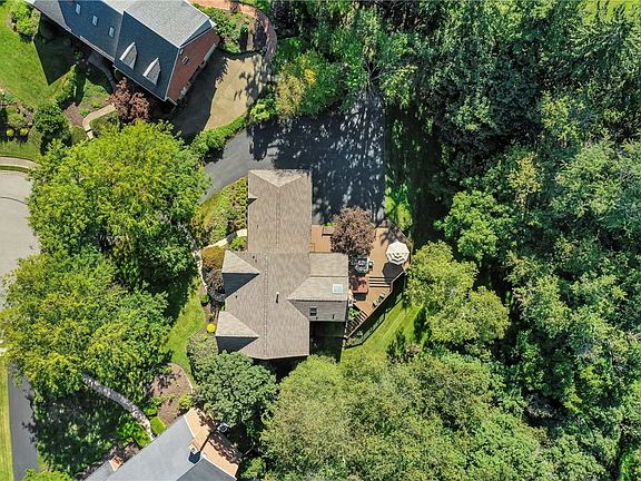 Nestled on a fabulous home site at the end of the cul-de-sac, this stately home is inviting inside and out. Every room is generously sized. Entry hall flanked by living/dining rms. Home office w window looking out to private rear yd. Oversize family room w fp & wet bar. Kitchen includes granite tops, stainless app, island, pantry, and morning rm. Main level laundry/mud rm. Rear entry, heated, att garage. Master bdrm boasts 2 large walk-ins, dual bowl vanity w granite top, and spacious bath w jet tub, shower, updated flooring, and skylights. Guest bdrm w private bath. 2 addit bdrms served by hall bath w tile shower and granite vanity top with vessel sink. Walk-out lower level. Game rm has large seating area plus a billiard area. Bar inc beverage refrigerator and dishwasher. Home gym w adj full bath. Lg storage/utility rm. Outdoor living space inc three-level deck. Level driveway. Rear yard with mature trees has a park-like feel. I-79 at Wexford is just a few minutes away.