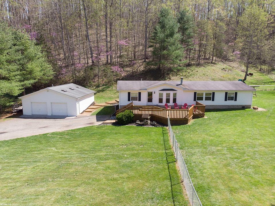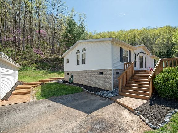 A peaceful country setting, yet convenient location, for this very well-kept, open concept, 3 bedroom, 2 bath home on 3.3 acres, just past the Christiansburg town line. This bright and cared for double-wide is perfect for one-level living and features newer windows, updated appliances and newer flooring throughout the main living space and kitchen, extensive decking, a large double detached garage, new duct work installed in 2004 and a fenced in yard. The septic was pumped in 2016, well pump and pipes replaced 1.5 years ago and heating/cooling and water treatment system are serviced annually. Priced below tax assessment, this is a wonderful opportunity to own a great home that does not break your budget!