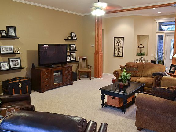 Entering the home you will notice 10' ceilings in the entry flowing into an open floor plan opening to the great room 10' ceilings, crown molding, fireplace, gas logs, wiring for a surround sound system, overlooking lovely views of the back yard. The study off the entry has 10' ceilings, French doors, ceiling fan, and could be used as formal dining or study.