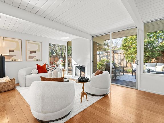 This single-level residence offers a well-designed 3BD, 2BA floor plan plus a versatile Bonus Office, all located within a top-rated Palo Alto school district. The best of both worlds: tucked into a cul-de-sac for privacy and peace, yet positioned on a quiet corner lot with open exposure and no neighboring homes blocking natural light. Fresh interior paint and hardwood flooring throughout create a warm, cohesive backdrop, complemented by multiple skylights that fill the home with abundant natural light. The bright living room features floor-to-ceiling windows and seamless access to the backyard, ideal for everyday living and effortless indoor-outdoor entertaining. The kitchen is thoughtfully appointed with stainless steel appliances, granite countertops, and new light fixtures, balancing functionality with clean, modern appeal. Perfectly functioning radiant-heated flooring runs throughout the home, providing year-round comfort with a streamlined aesthetic. A 2-car garage offers everyday convenience and storage, and includes a bonus room with a private entrance, perfect for flexible use. Ideally located within walking distance to Greer Park, Midtown Shopping Center and the shops and restaurants along California Avenue, with easy access to Caltrain and US-101. Welcome home.