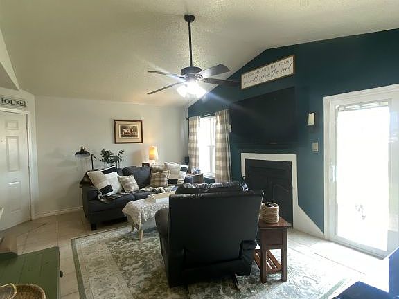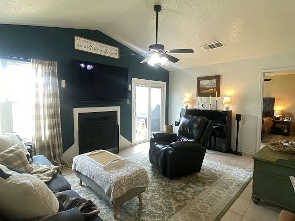 Welcome to this delightful 3 bedroom, 2 bathroom home built for comfort and convenience, featuring a sleek modern design upgrade. With tile flooring throughout, this home offers a spacious and inviting living area with a cozy fireplace, perfect for relaxing or entertaining. The kitchen is well appointed with stainless steel appliances, a pantry, and a comfortable eat in dining space. The primary suite includes a ceiling fan, dual walk in closets, and a private en suite bathroom with a soaking tub and double vanity. Two additional bedrooms and a full guest bath are located along the same hallway, providing both privacy and functionality. A laundry closet adds everyday convenience. Outside, enjoy a generously sized backyard that is ideal for outdoor living and gatherings. With a two car garage and thoughtful details throughout, this home is ready to welcome its next residents.