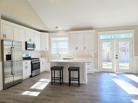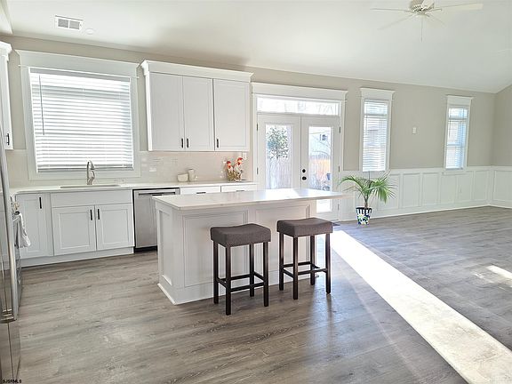 Beautifully renovated ranch, 3 Bedroom, 2.5 Bath. Gutted to the studs, completed in 2021, all new electric, plumbing, HVAC, roof. New luxury vinyl flooring throughout. New bright white kitchen, 42" cabinets, stainless steel fridge & dishwasher, new 5 burner gas stove. Quartz countertops, center island. Master Bedroom with 12' walk-in closet. Master Bath with quartz counter, double sink, walk-in shower. From great room, french doors lead to large new vinyl fenced yard. Sprinkler System. Garage / Shed will be completed to compliment house. Located just minutes to Jersey Shore Beaches, Atlantic City Airport, shopping and dining. Call today to see this beautiful home located on a lovely tree lined street!