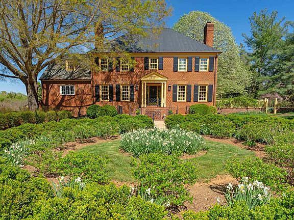 Outstanding Garth Road location. This impressive brick Georgian home with 5,391 sq.ft of living space on 3.57 acres is just 5 miles to Barracks Rd Shopping Center & City limits. Well constructed & maintained home features a wide entry hall, formal living room with fireplace, separate dining room, newly renovated & fully loaded eat-in kitchen, study, generous sunroom & surrounding terrace. The second-level features a master suite with fireplace, generous dressing room and full bath, plus three more bedrooms & renovated bath. Full basement includes family room w/ fireplace, home office, utility and two car garage. There are absolutely stunning formal & informal gardens surrounding the residence. Expansive, gently rolling yard with gorgeous views and a breathtaking setting. Home is very well built with brick construction, copper roof & gutters. Meriwether Lewis Elementary District.