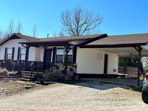 MOTIVATED SELLER! Partially remodeled home sitting on great corner lot with plenty of mature hardwoods in front yard for summer shade. Back yard is spacious and could be fenced for your furry friends or farm animals. Single carport on front of home and single car garage that enters in the basement. Home has new laminate flooring in most of home and bathroom has been remodeled with new shower and vanity. Partial basement with full bathroom makes a great work area or storage. Roof new within 6 years, new HVAC in April 2021 and new back deck for grilling is only 2 years old. Home also has amazing custom built tree house with slide for the kids to play. KY lake is within ~5 miles of property.