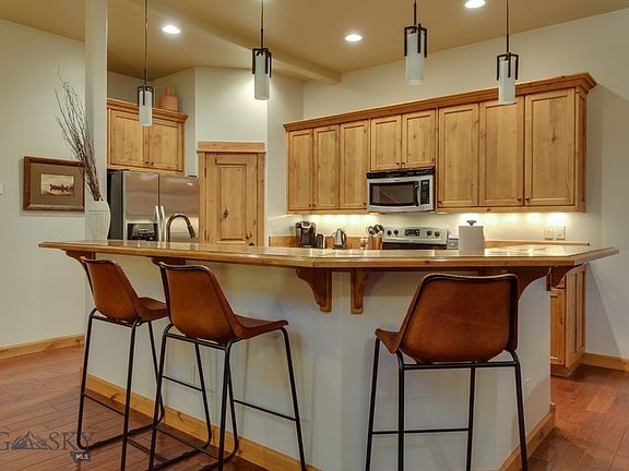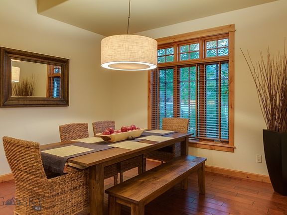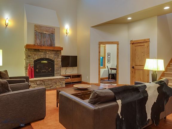 High quality, rustically designed, end unit Townhome in the Legends at Bridger Creek. This unit has southern light and mountain views. Luxury finishes complement the interior, which includes radiant, in-floor heat; solid maple floors; luxury main-floor master with travertine tiled walk-in shower, jetted tub; spacious kitchen, w/ SS appliances and wine cooler; two-story, great room with stone, gas fireplace. There is an a/c unit in the master bedroom.