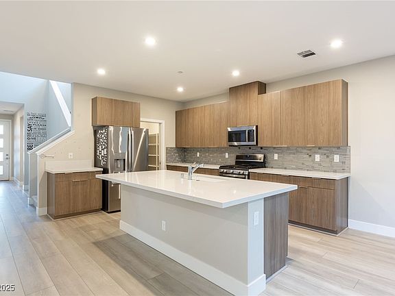 Nestled in the highly sought-after Inspirada community, this Tri Pointe home is offers an exceptional blend of comfort, elegance, and convenience. This property features 3 spacious bedrooms and 3 full bathrooms, providing ample space for family living and entertaining. Upon entering, you are greeted by an inviting open floor plan bathed in natural light. Including a convenient downstairs bedroom with a full bathroom. Downstairs features modern electrical shades, offering seamless light control. The kitchen boasts upgraded cabinets and top-of-the-line appliances. Upstairs loft, perfect for additional living space. The primary bedroom is spacious and filled with natural light. The primary closet has been professionally upgraded with advanced organization features, and high-end finishes. One of the bedrooms features a built-in Murphy bed with a high-quality desk combination. The backyard showcases a low-maintenance, professionally designed combination of artificial grass and pavers.