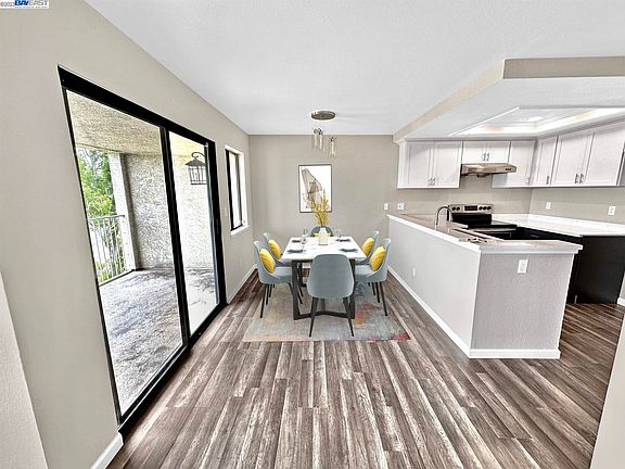Hurry to this beautiful newly updated condo in Castro Valley school attendance. No steps to unit. Enjoy bay view from your living room and private balcony. Brand new kitchen with new cabinets, new recessed ceiling lights, new appliances, and new fixtures. New laminated floor in living and dining and hall way. New carpet in bedrooms. Master bedroom ensuite with double mirrored closets. Fireplace in living room. One covered and one uncovered parking spaces. Updated bathrooms with tiled floors and new vanities. In unit laundry. Castro Valley unified school attendance. Easy freeway access. One covered carpet. Near Chabot Regional Park, Golf course, San Leandro or Hayward BART station, and Oakland international airpot. HOA dues include water and trash and community gym. No rental restrictions.
