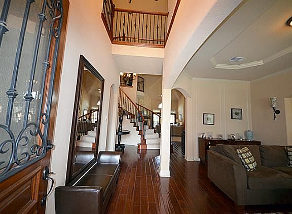 Pristine 5 bedroom home with sparkling pool with water features and impressive duel cedar covered arbors and outdoor fireplace lush landscapes. Enjoy soring ceilings, an office with French doors, media room, game room, huge master suite with access to pool. This split 3 car home has granite in island kitchen with ss appliances. wrought iron staircase, hardwoods and custom touches everywhere. duel tankless hwh. Stunning front elevation! 06/23/14