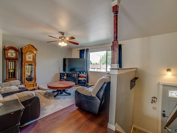 Come take a look! This 4 bedroom 2 bathroom 2 car garage home, offers a large beautiful trex deck overlooking the fenced backyard. There is new carpet in the upstairs bedrooms and family room, central air, updated windows and roof, a wood burning fireplace, laminate flooring ,stainless appliances, and custom countertops. This home has a solar loan agreement that the buyer would need to qualify for and assume-the payment is $206.73/month making your Blackhills payment very low. The garage has a gas furnace as well as a 7" vented heat/ac duct, it also offers loft storage and drop down stairs could be added for additional attic storage above the garage.