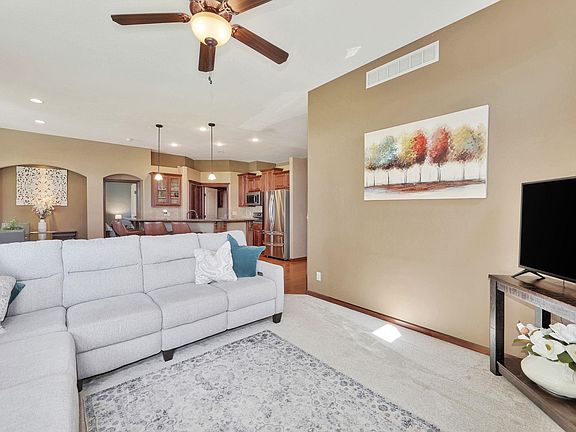 Welcome to this well maintained and desirable home located in the Andover school district while remaining in Sedgwick County. As you drive up, you will notice the home sits on a corner lot that is almost half an acre with plenty of yard space. Walk in and you are greeted with real hardwood floors that leads you to an open concept kitchen, dining, and living space. Kitchen features a large island with raised eating bar, granite countertops, walk in pantry, and all kitchen appliances remaining with the home, most of which are less than 5 years old. Living room boosts large windows that over look the backyard and a fireplace focal point. Off of the dining room you will find the primary bedroom that features a large master bathroom with dual sinks and separate shower and corner tub, along with a walk in closet. On the other side of the main floor, you will find two additional bedrooms with a full hall bathroom. Downstairs you are welcomed with a large family room with a corner fireplace and view out windows. On the other side of the room you will find a convenient wet bar and additional storage. Family room is wired for surround sound. Basement features an additional two bedrooms, full bathroom, and room for storage. An amazing bonus is the HVAC, furnace, water heater, and roof (with the addition of solar attic vents) have all been replaced since 2019. Outside you have a covered deck surrounded by a concrete patio, irrigation well, and a sprinkler system. Invisible underground pet fence covers the entire property including under the driveway. Don't miss this great opportunity on a well maintained and clean home!