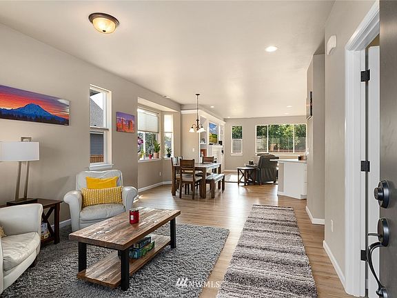 Quality built Sanders Mill craftsman rambler. 3 bedrooms + den/office. Open great room, kitchen & dining room. Solid countertops, stainless steel appliances & breakfast bar. Gas fireplace with built in shelving. Large master bedroom, walk-in-closet, double sinks. Large beautifully maintained fenced yard, sprinkler system yard. Close to walking trails, Alder street park is just a walk away. Close to town, but far enough away to get that peaceful country feeling.