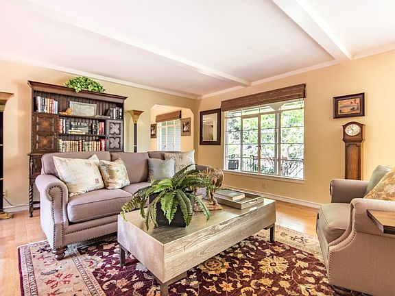 2640 sq ft Beauty Custom Finished in a Rich Romantic & Entertaining Way. 11,500 sq ft lot w/Gorgeous Park Like Grounds in a Private Setting w/Solar Heated Pool, Majestic Oaks and Garden Area. Enjoy the Family Rm off the Kitchen out to Backyard. 3 Full BA's; 3rd BA w/Laundry, Formal Dining Room & Charming Library w/Fplce (or 4th BR). Enormous Master Suite; a world unto itself, encompasses the Entire Upstairs Level with Large Sitting Area as well as an Extra Sitting Rm; Great for Nursery or Office. French Doors, Hdwd Flrs, Blt-in Cabinetry & Balconies add to the Warmth of this Hm. Truly, a Special Property in a Wonderful Setting and Location!