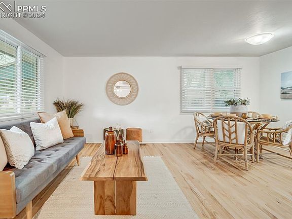 Welcome to this charming corner lot 4 bedroom, 2 bath rancher centrally located in Colorado Springs. Upon entering, you'll be greeted by the inviting living room and dining room combo, featuring original hardwood floors and a cozy fireplace. The kitchen seamlessly transitions to the back patio, offering a perfect setting for indoor-outdoor entertaining and relaxation. The main level also boasts a 3/4 bathroom, two bedrooms, and convenient main level laundry facilities, providing ease and comfort for everyday living. The updated basement offers additional living space, including a large family room with a wood-burning stove, two spacious bedrooms, 3/4 bathroom, kitchenette area, and laundry hookups. With a separate back entrance, this basement level presents a great rental opportunity, with the potential to split the upper and basement levels for short-term rental (STR) income if desired. Outside, the backyard features a large concrete patio and a detached two-car garage. With its flexible layout and rental potential, this property offers endless possibilities for investment or multigenerational living. Conveniently located close to schools, shopping, and restaurants, this home provides easy access to the entire city, with I-25 and Academy Blvd a quick 10 minute drive away. Schedule a viewing today and discover the potential of this versatile home!