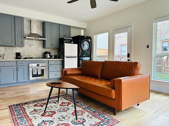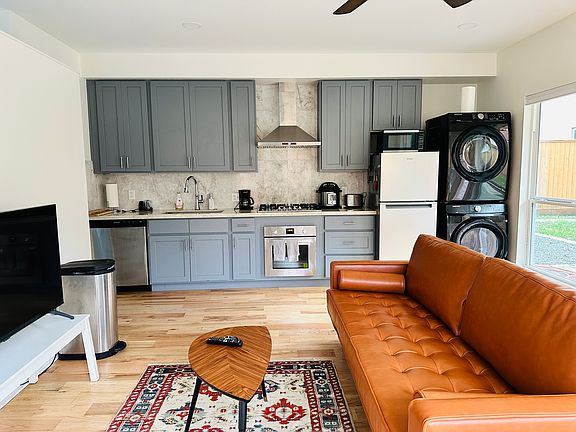 Stunning new 1 bedroom/1 bathroom townhouse. Completely furnished with mid-century modern furniture and a fully equipped chef's kitchen. This professionally designed space is bathed in natural light and 360 degree views of mature trees in this historic neighborhood. Ideal for urban professionals or university students. It is centrally located near downtown, universities (1.8 miles from Rice University and the University of Houston), the Museum District, the Medical Center, Hermann Park, and Sports Venues. Mid-Term to One-year lease is required. Tenants pay all utilities. Small dog or cat is acceptable.