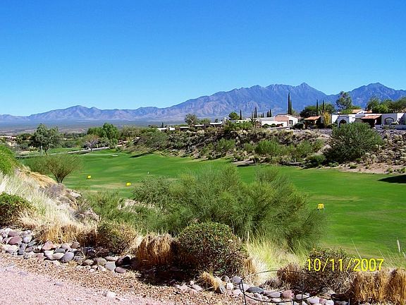 One of the best Views in the'' Desert Hills Casita's'', can be seen as you open your front door! From watching the ever-changing colors made by sunsets, sun-raises on the Santa Rita Mountains to watching the wildlife that gather at their watering hole on the Desert Hills driving range. Your cook will love the Newer Whirlpool French door Refrigerator and Microwave.This Casita also, features a built in-four shelf linen closet! Besides having your covered parking right at your front door.