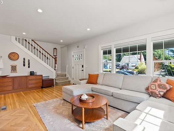 Stunning 4 bed / 3 full bath home in South Tabor. 2017 complete remodel - the upper level was added with new electrical, plumbing, siding, windows, furnace, AC, tankless water heater, roof & paint. Welcome home to your generous front porch perfect for lemonade sip'n, Mt Tabor viewing and chatting with neighbors. In the back, find a fenced yard with raised beds growing veggies and pretty flowers. Comfortable, energy efficient & gorgeous with a floor plan + great flow. Main floor find full bath, 2 bedroom and kitchen + dining + living room that exudes warmth from a fireplace. Upstairs has a phenomenal primary suite plus a 2nd full bathroom & 2nd bedroom. Full basement is a blank canvas for your life. Perfect for storage, a shop or anything your imagination can conceive. [Home Energy Score = 5. HES Report at https://rpt.greenbuildingregistry.com/hes/OR10186533]