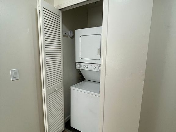Features: This unit is laid with hardwood floors while the kitchen comes equipped with a stove, microwave, refrigerator, private laundry machines