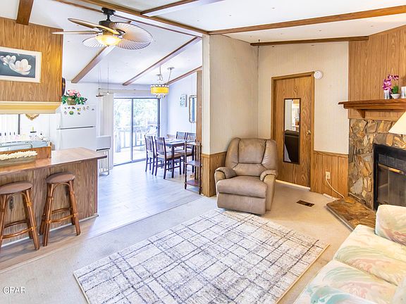 Wow! Own a piece of Panama City Beach! Great location to shopping and some of the finest restaurants on the beach with lots of entertainment close by as well! One of Florida's top State Parks, St. Andrews SP, is approximately 1.5 miles away, offering snorkeling, boating, swimming, fishing, camping, white sand beaches and beautiful emerald green waters! You don't even have to pack your beach stuff anymore...you can just leave it all here if you make it yours! Don't miss out on this opportunity to own your own piece of the paradise! This 2 bedroom, 2 bath home has a split bedroom plan, open living area with a fireplace and a full kitchen with dining area. Nice size yard, large circular driveway for a boat or a stored vehicle if you just want to come for certain times of the year. Home is being furnished. Roof was replaced in 2019. Call and schedule your showing appointment today!