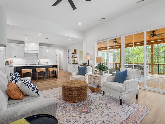 Lay Lake -Built in 2024, over 2500 Sq Ft- One Level Custom Luxury Plan with 124' Shoreline with Main channel views. Approved by APCO for Boardwalk and Pier. Seller adding a fantastic GolfCart/SidebySide path to water along with an inviting Lakeside fire pit -ornately designed by local Professional contractor. Home is exceptional with immediate natural light, straight clean lines, Quartz countertops and more. Lake view Master Suite, two additional Ensuite Guests, Lux LVP water and scratch resistant flooring, Walk-in Closets in all rooms, seamless plan w/Dining, Island Breakfast Bar Kitchen, divine Walk-In Pantry, Great Room accented w/Fireplace and grand opening to a vast Lake view Deck for additional Outdoor Living space. Unmatched utilization of every single square inch of space! Also includes Bonus Room for Nursery/Office/Play, Over sized 2 car Garage & additional outdoor storage space dedicated in back. 4 miles to Pursell Farms. Community Pool, Pavillion, Launch & docks.