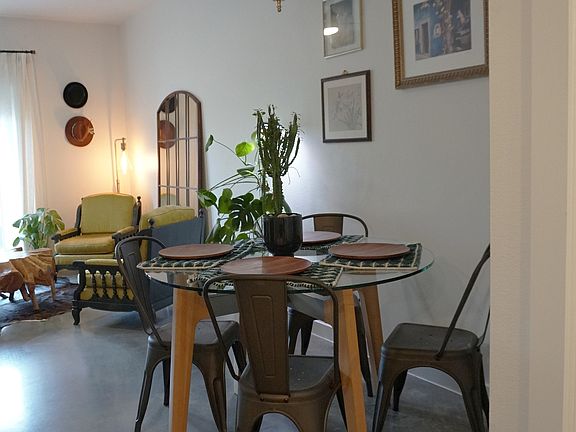 This thoughtfully furnished one-bedroom apartment blends global character with everyday comfort. Curated pieces inspired by Istanbul, Morocco, Portugal, and Italy add warmth and personality, while clean lines and natural light create a calm, livable space.