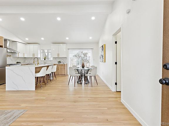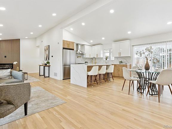 Nestled in one of Lakewood’s most coveted neighborhoods, this beautifully appointed home offers 1,656 square feet of thoughtfully designed living space, all conveniently situated on one level. The inviting open-concept layout seamlessly blends the kitchen, dining, and living areas, creating a bright and airy atmosphere accentuated by stunning vaulted ceilings. Natural light floods the space through new double-pane windows, while a modern electric fireplace adds a touch of elegance. The expansive corner lot provides ample parking with a large driveway, accommodating multiple vehicles and an RV. The fully fenced, landscaped backyard offers a private retreat with plenty of room for outdoor activities, while the front yard features a curved driveway for additional parking. Fresh stucco, a sleek new roof, and stylish black double-pane windows enhance the home’s striking curb appeal. Inside, the home features three spacious bedrooms, each with vaulted ceilings and pristine wood floors. The primary suite is a true retreat, featuring a walk-in closet and a beautifully remodeled 3/4 bath with dual sinks, designer tile, and Bluetooth lighting for a modern touch. The two additional bedrooms are generously sized and share a beautifully remodeled full bathroom. The laundry room is finished with elegant tile flooring, adding a touch of sophistication to the practical space. The heart of the home—the kitchen—boasts a striking waterfall quartz island, with the same luxurious quartz extending up the walls as a backsplash. Modern soft-close cabinetry and stainless steel appliances complete this chef’s dream kitchen. Every inch of this home exudes charm and quality, with white oak wood floors flowing seamlessly throughout. This is an exceptional opportunity to own a home in a prime location—don’t miss your chance to make it yours!