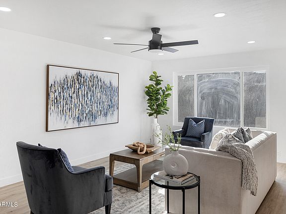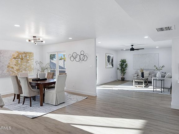 Clean and open floor plan. Brand new remodeled 4 bedroom 2 bath home. Home with new cabinets, quartz countertops, new LVP flooring, new appliances that come with the home (Fridge, microwave, oven, stove), new vanities, new painted garage, new can lights and fans, new interior and exterior paint, new pool cleaner, new doors, new drywall, new sinks, new bathtub, 2017 AC unit, 2005 Roof, 2022 Windows, 2022 renovated garage door system, 2021 water heater. Washer and dryer included. Near Loop 101 for quick freeway access without the noise.