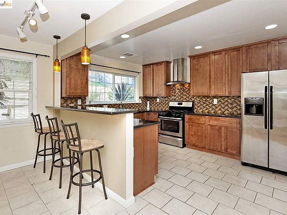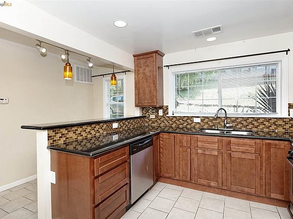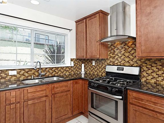 A stately, beautiful willow tree overlooks this multi-level, hillside home on a quiet, short one way street. Entry level is sunlit open floor plan with nice hill views. Close the dual paned windows to quiet outside noises. Kitchen has ample floor and counter space, cabinets and breakfast bar. Seems like lots of room for multiple cooks. Kitchen windows across the front of house look out at the hill across the way. Full bath also on this floor. Upstairs to warmer, carpeted loft bedroom that almost covers footprint of the house. Lower level downstairs with 2 br and full bath can be a cooler spot. Utility room has washer, dryer, water heater, electrical panel, and some storage. House is centrally heated (including bathrooms). Hall downstairs leads to side deck and yard. Property has its own driveway. Yards nicely landscaped with flowers and plants to attract hummingbirds, bees, and butterflies. Near Lakeshore shopping, Oakland's recreational gem Lake Merritt. Close to 580 freeway.