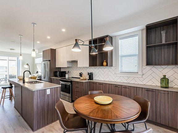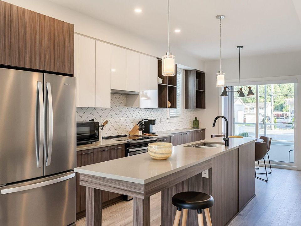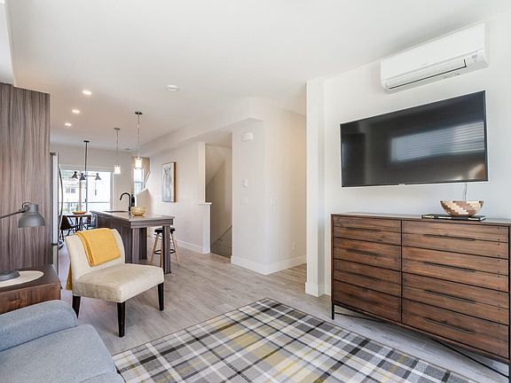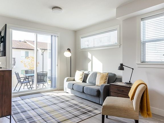 Bright and thoughtfully designed townhome at Mill District. Built in 2019, this spacious 2 bed + 3 bath home features open concept living, generous 9" ceilings, A/C, laminate floors, office for work from home professionals, tons of storage space, deep-set soaker bathtub, and quality finishes throughout. Modern kitchen offers S/S appliances, elegant quartz counters, herringbone tile backsplash, soft-close cabinets, and kitchen island with a breakfast bar. Relax and entertain on your private fenced patio. Floor to ceiling windows in the master bedroom, large walk-in closet, frameless glass shower, king sized bed, and his & hers sinks. Tandem secured garage, rentals and pets allowed. Walk to Mill Lake, Sevenoaks Shopping, schools, parks, and more. Comes fully furnished, move in today!