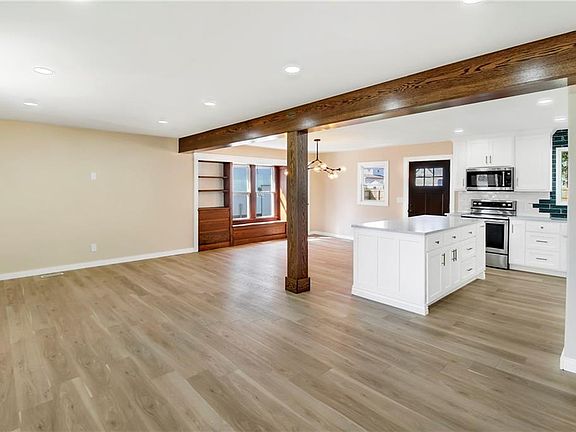 Completely updated and move-in ready, this 3-bedroom, 1.5-bath home blends classic charm with modern finishes. Step inside to find an open-concept layout featuring beautiful wood accents, recessed lighting, and luxury flooring throughout. The bright, updated kitchen boasts white cabinetry, quartz countertops, stainless appliances, and a large island--perfect for cooking or entertaining.