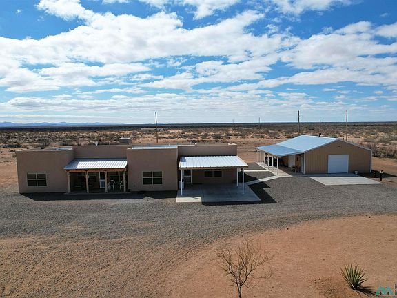 If you want seclusion and privacy, this is it. This beautifultwo-year-old home is on 10 acres and is 32 miles from Las Cruces and 32 miles from Deming. The builder/Owner did not cut corners building this house, with 2x6 construction, a gourmet kitchen, a formal living room, and a large family room. 3 bedrooms and 2.5 baths. The 1200-foot Garage/shop has a porch as well as one on the other side of the house. You get a 360-degree view of all the mountain ranges in the area. The acreage is completely fenced and is ready for your garden and animals. The gun range is a bonus. Call to set up an appointment today