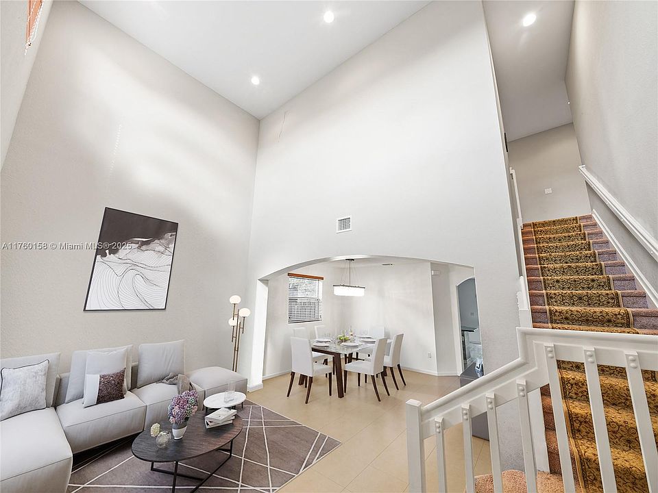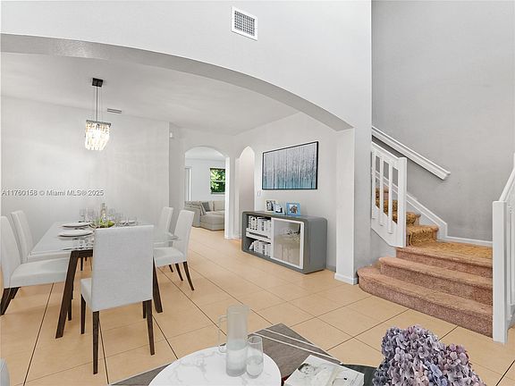 Welcome to this spacious 5-bedroom, 4-bathroom home in sought-after Hemingway Point! Enter through an impressive foyer with soaring high ceilings, leading to a formal living area. The ideal layout includes one bedroom on the first floor. Upstairs, double doors reveal a grand master suite with two large walk-in closets and a bathroom the size of a bedroom, complete with a separate tub, shower, and dual vanities. Another bedroom upstairs offers an en suite, while two guest bedrooms share a Jack and Jill bath. Enjoy low HOA fees and convenient access off Exit 9, just after Cutler Bay.