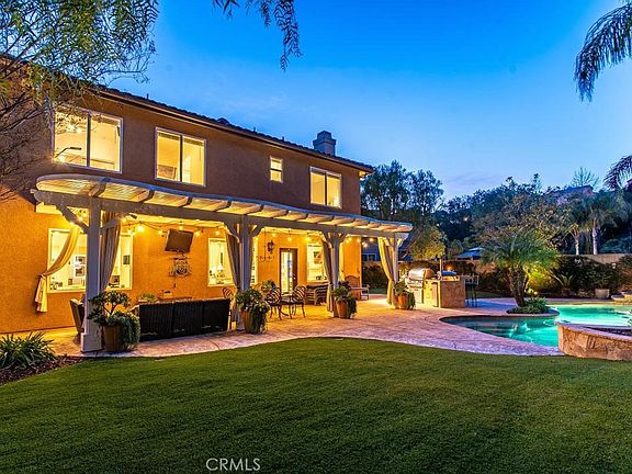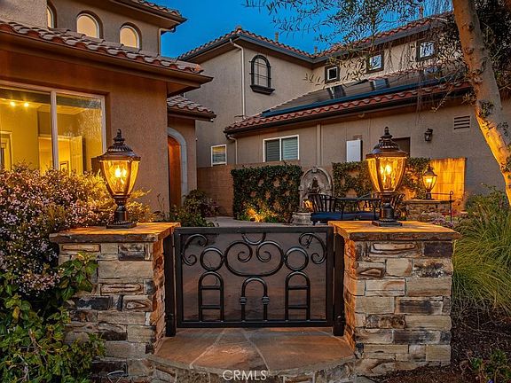 IMMACULATE Stevenson Ranch pool home on a LARGE lot! This home has it all! Great location on a quiet street with an 11,125 sf lot. Beautiful curb appeal with a large courtyard area and custom accent lighting. Light, open floor plan with vaulted ceilings at the entry and numerous windows providing great natural light. Updated hardwood flooring throughout the home. Full bedroom and bathroom downstairs. Bathrooms and kitchen have all been updated. Kitchen has beautiful stone counters and stainless-steel appliances. Windows recently replaced, newer PEX plumbing, OWNED SOLAR, upgraded electrical panel and additional large subpanel in garage. Spacious primary bedroom with additional bonus room perfect for home office/gym/nursery. The backyard is a true oasis with sparkling pool and spa, built in BBQ, large open area with newer low-maintenace turf, and wide side yard. 3 car garage with epoxy flooring and finished pull down storage. No rear neighbors. Walking distance to local elementary school and park, just minutes to the freeway. This is one you don't want to miss!
