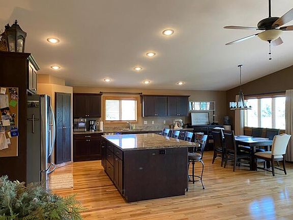 Convenient city location with rare country views! This beautiful 4 bedrooms, baths home features an open floor plan and oversized kitchen island perfect for entertaining, vaulted ceiling, larger master walk in closet, downstairs surround sound. 3 stall garage, sprinkler system and great storage throughout. Located close to Central High school in a quiet neighborhood. Sit out on the deck or 2-tier patio and enjoy beautiful scenery and deer watching in the privacy of your own back yard. This home is move in ready and has always been smoke and pet free. Showings start on Friday, October 15th 2021.