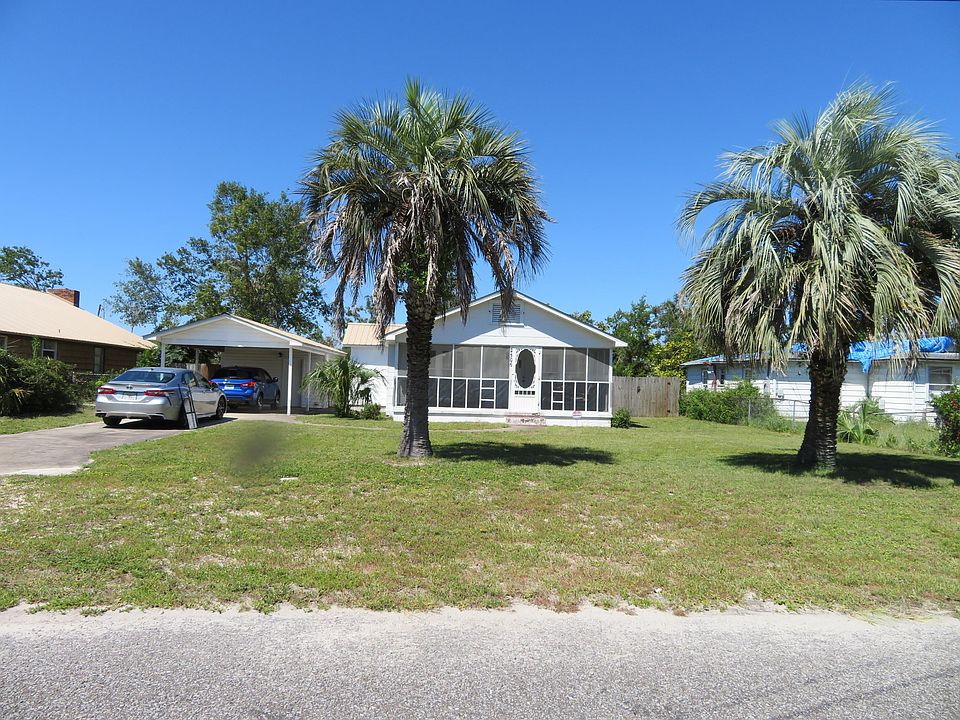 Check out this adorable but sturdy St. Andrews cottage that withstood the hurricane with little damage! It did get a new roof that is 26 gauge steel, stronger than most. The home is move in ready! Enjoy 2 spacious bedrooms & 2 separate sitting areas. It even includes the furnishings so just bring your clothes and you're set. You'll love the screened in front porch that is even wired for TV to enjoy those Fall football games outside. There is also a 7x14 secure storage building/laundry area which has an outdoor shower off of the back. The yard is spacious and fenced with room to park your boat. There is also a carport. All this just a bike ride to the St. Andrew's area restaurants, shopping and marina to enjoy the Florida life. 2nd home- No problem...it has video security too!